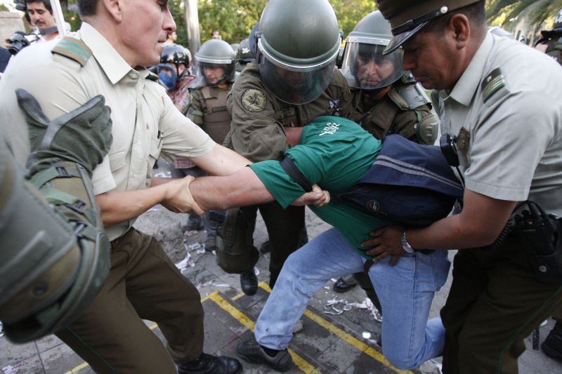 A polícia chilena disparou gás lacrimogêneo e entrou em choque com manifestantes que protestavam contra um evento que homenageava um ex-oficial das Forças Armadas, que cumpre pena de prisão pela matança de presos políticos durante a ditadura de Augusto Pinochet.