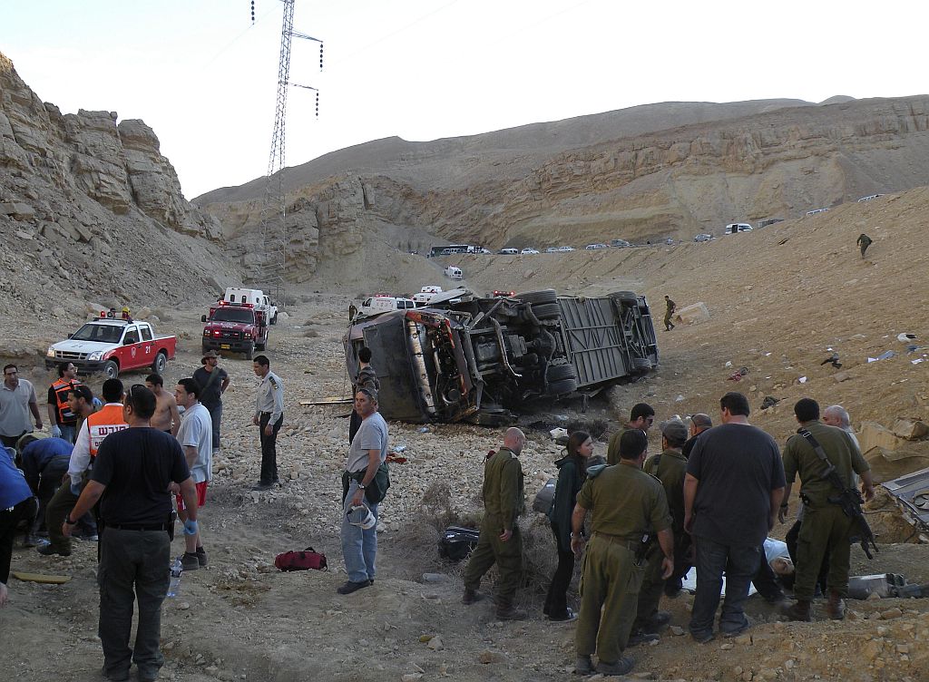 Quarenta ambulâncias foram enviadas para o local do acidente e a Força Aérea de Israel enviou seis helicópteros para retirar os turistas com ferimentos mais graves. O acidente ocorreu numa estrada no deserto.