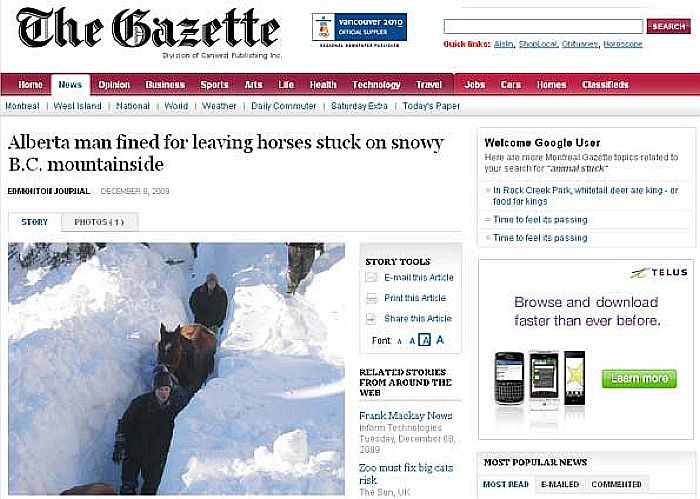 O advogado Frank Mackay foi condenado a pagar mais de 7 mil dólares canadenses (cerca de R$ 11,6 mil), na última sexta-feira (4), depois que dois cavalos seus ficaram entalados na neve em dezembro do ano passado, segundo reportagem do "Montreal Gazette".