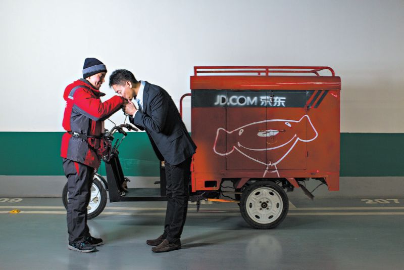 Enquanto o mercado da Alibaba serve como plataforma para conectar compradores e vendedores, a JD compra produtos de fabricantes e distribuidores e os mantém estocados em seus armazéns um modelo semelhante ao da Amazon. Então ela organiza a entrega rápida de virtualmente tudo, de refrigeradores a meias, usando motos em algumas das maiores cidades do país.