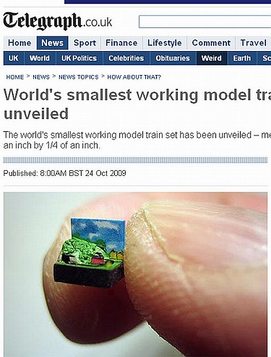 O norte-americano David Smith, de 55 anos, que mora em Toms River, no estado de Nova Jersey (EUA), construiu o menor trem em escala real do mundo, segundo reportagem do jornal inglês "Daily Telegraph".
