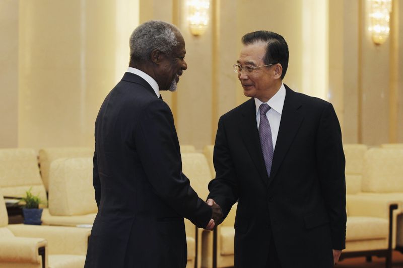 Em uma visita de dois dias a Pequim, Annan disse ao premiê chinês, Wen Jiabao, que enfrentou uma longa e difícil tarefa em sua missão de acabar com o conflito na Síria, mas que a cooperação global com a China e outros países foi a única maneira de fazê-lo.