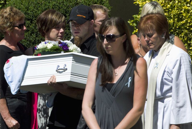 Um menino de cinco meses, a vítima mais jovem do terremoto que atingiu a Nova Zelândia na semana passada, foi a primeira a ser enterrada, nesta segunda-feira (28). Parentes de luto seguravam bichos de pelúcia e envolveram seu pequeno caixão num cobertor. Baxtor Gowland estava dormindo em sua casa em Christchurch quando foi morto por um pedaço de alvenaria que o atingiu na última terça-feira, informou sua família. Ele morreu no hospital.