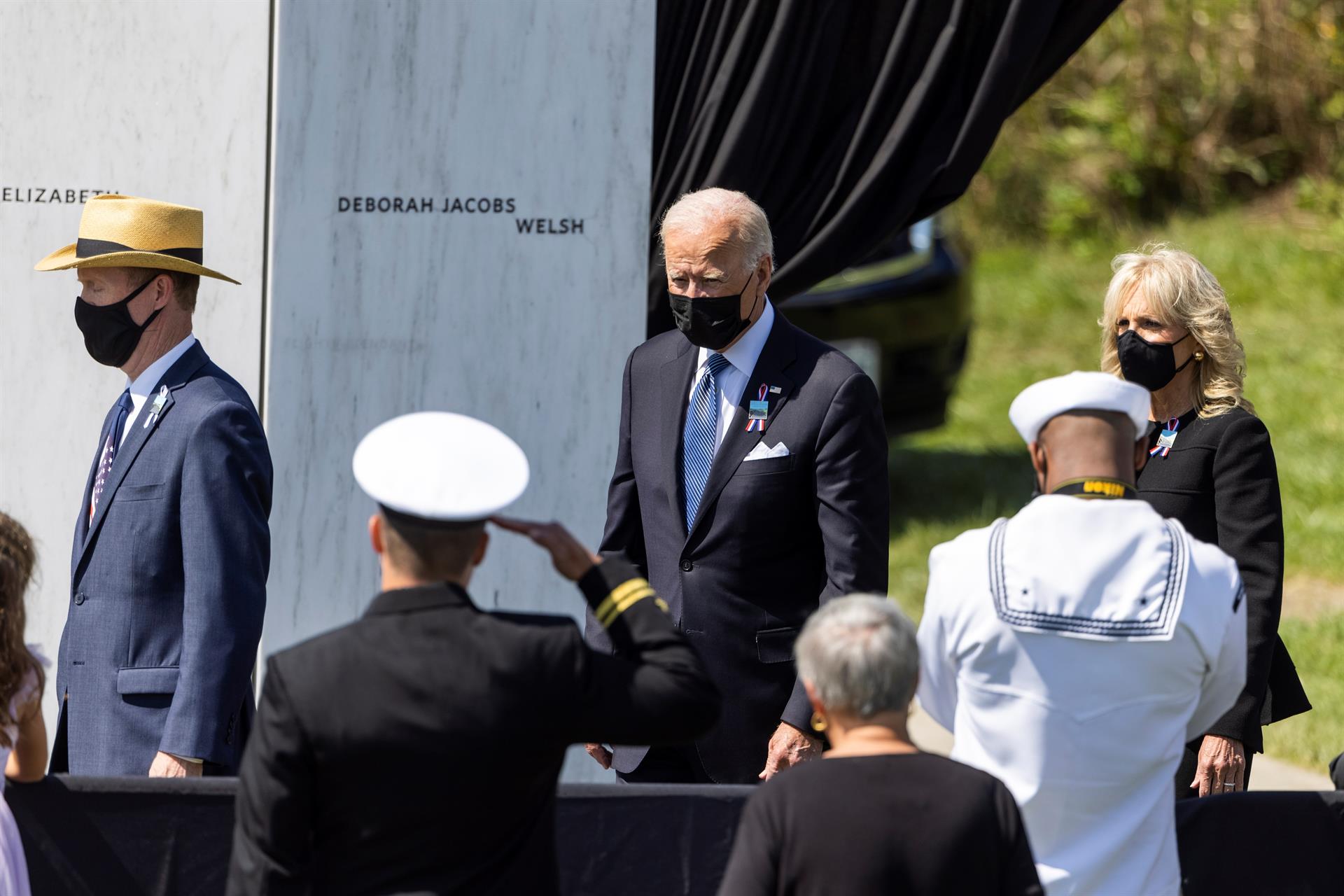 Biden não fez discursos nos eventos dos quais participou em homenagem às vítimas dos atentados em Nova York e em Shanksville, no estado da Pensilvânia, mas fez algumas observações aos repórteres após visitar um quartel de bombeiros na última cidade.