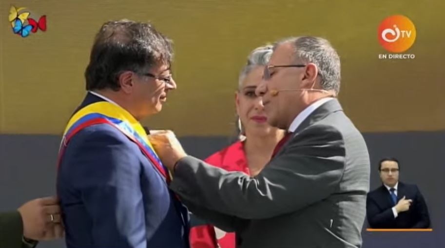 Como primeiro ato, já empossado, o presidente ordenou que a Espada de Simón Bolívar, símbolo da luta guerrilheira na Colômbia, fosse levada para o local da cerimônia. Horas antes, o desejo de Petro não havia sido atendido pelo então presidente do país, Iván Duque.