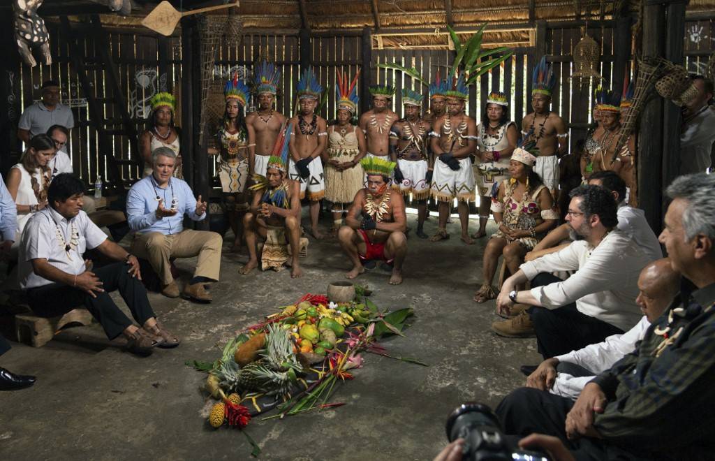 Um grupo de líderes de países que têm floresta amazônica em seu território fez um acordo nesta sexta-feira (6) para monitorar a Amazônia por satélite e responder mais rapidamente às emergências, para evitar incêndios como os que consumiram milhares de hectares de floresta neste ano. Estiveram presentes na reunião na Colômbia os presidentes do Peru, Martín Vizcarra; Colômbia, Iván Duque; Equador, Lenín Moreno; e da Bolívia, Evo Morales; o vice-presidente do Suriname, Ashwin Adhin; e o chanceler do Brasil, Ernesto Araújo, que representou Jair Bolsonaro - que não viajou por motivos médicos e participou por vídeo-conferência. Ficaram de fora Venezuela, Guiana e Guiana Francesa, que também têm floresta amazônica em seu território.