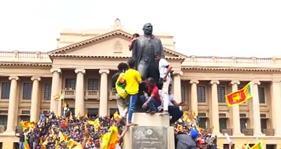 Vídeos publicados nas redes sociais mostram o momento em que a multidão rompe o perímetro de segurança, apesar das tentativas da polícia em conter a invasão usando gás lacrimogêneo. De acordo com o jornal local Ada Derana, o presidente já havia deixado o local quando os manifestantes entraram.