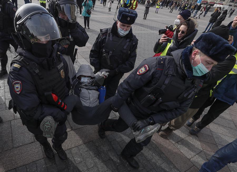 As manifestações realizadas neste domingo (6) na Rússia, para pedir o fim da invasão à Ucrânia, convocadas pelo líder de oposição Alexey Navalny, terminaram com a prisão de pelo menos 3,5 mil ativistas. A informação foi veiculada pelas agências de notícias russas TASS e Interfax, que têm como fonte a porta-voz do Ministério do Interior do país, Irina Volk.