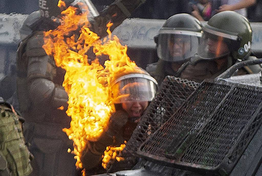 Em mais um dia de protestos no Chile, milhares de manifestantes foram às ruas de Santiago e outras cidades chilenas pedir mudanças políticas no país. As mobilizações foram anunciadas pelas redes sociais como "super segunda-feira". Houve choques entre policiais e manifestantes no centro da capital quando manifestantes tentaram avançar até o palácio presidencial La Moneda. A polícia usou gás lacrimogêneo e jatos d'água para conter a manifestação. Segundo o jornal chileno La Tercera, um ataque com coquetéis molotov deixou duas policiais feridas com queimaduras (veja o momento do ataque no vídeo abaixo).