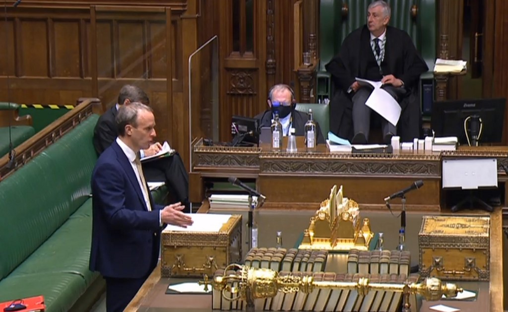 Raab acusou a China de violações de direitos humanos que ele descreveu como "barbárie" e de cometer abusos "em escala industrial" contra os uigures na província de Xinjiang. As relações entre Londres e Pequim já estavam desgastadas desde o aumento da repressão em Hong Kong, condenada pelo governo britânico.