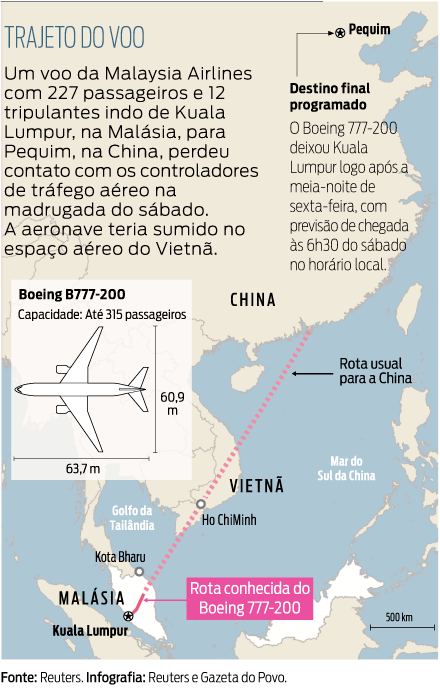 "Uma missão internacional de busca e resgate foi mobilizada nesta manhã. Até agora, nossas equipes de resgate da Malásia, Cingapura e Vietnã não puderam encontrar nenhum resto do avião", disse a Malaysia Airlines em seu último comunicado.
