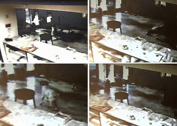 Piecura mostrou ao "News Channel 3" as imagens registradas por uma das câmeras de segurança do Lynx Gentlemen's Club. Uma das cabras quebra uma porta de vidro, entra no clube e é seguida pela outra. As duas correm dentro do estabelecimento e vão embora pouco depois.