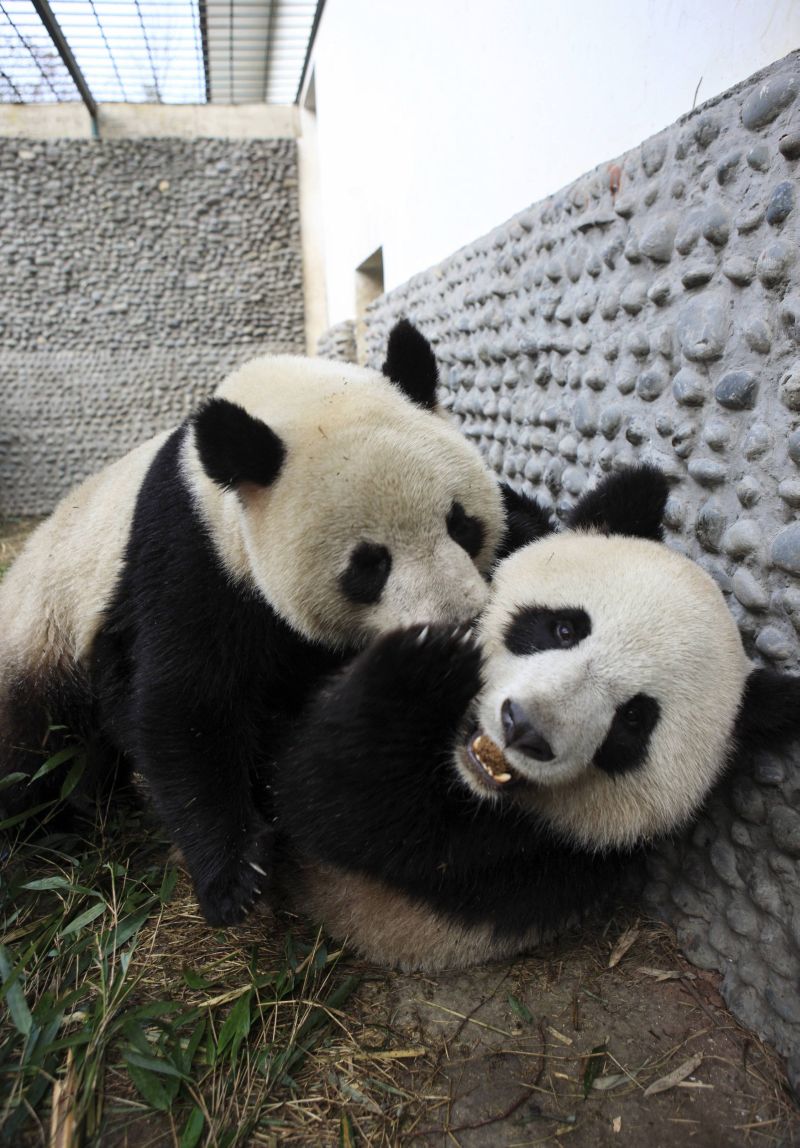 Yuan Zi ("gordo" em chinês) e Huan Huan ("alegre") deixaram a China a bordo do "Panda Express", um Boeing 777F especialmente fretado pela empresa Fedex, que aterrissou no aeroporto da capital pouco antes das 11h00 GMT (09h00 de Brasília), ante os aplausos das personalidades que foram recebê-los, entre elas, o embaixador da China na França e dezenas de jornalistas.