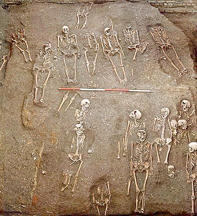 Os corpos foram enterrados entre os séculos 13 e 15 e eram de pacientes do Hospital St. John the Evangelist, que funcionou no local até 1511. A maioria dos corpos era de homens e foi enterrada sem caixão. Seis gerações estão enterradas no local.