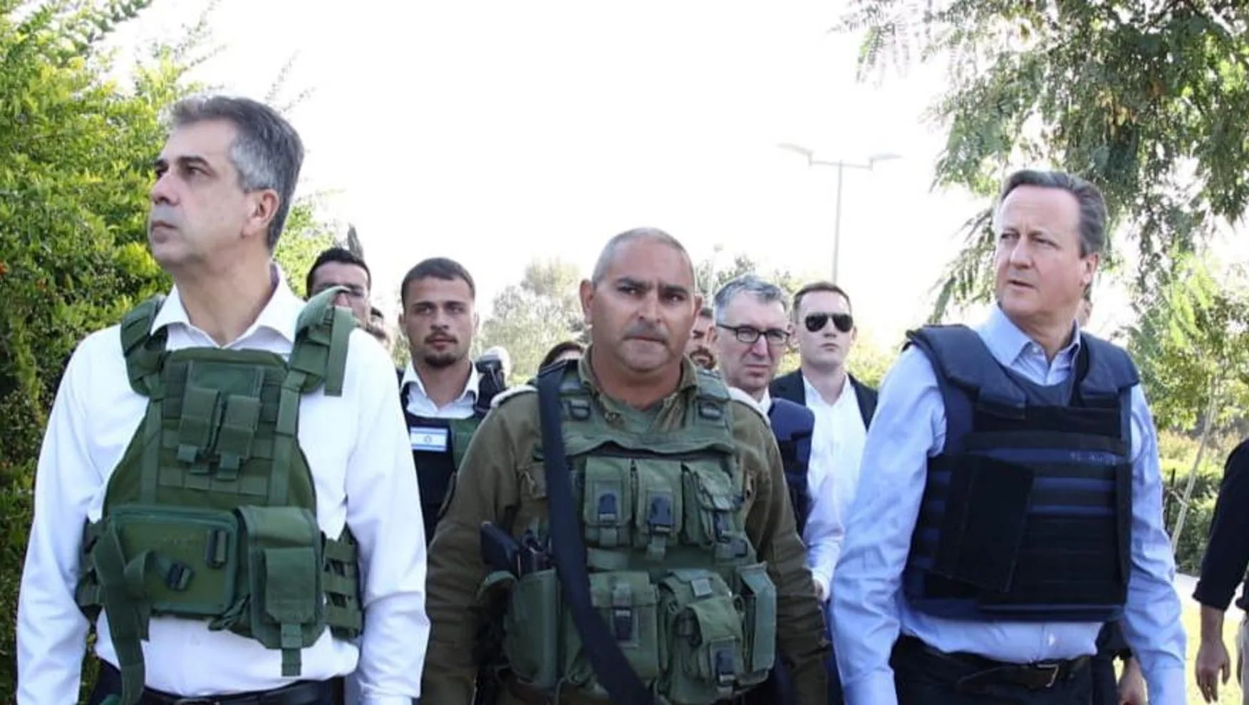 Acompanhado pelo chanceler israelense, Eli Cohen, Cameron vestiu um colete à prova de balas e percorreu as ruínas das casas queimadas e perfuradas por balas dos terroristas, onde mais de 100 pessoas foram mortas e muitas outras sequestradas pelo Hamas.
