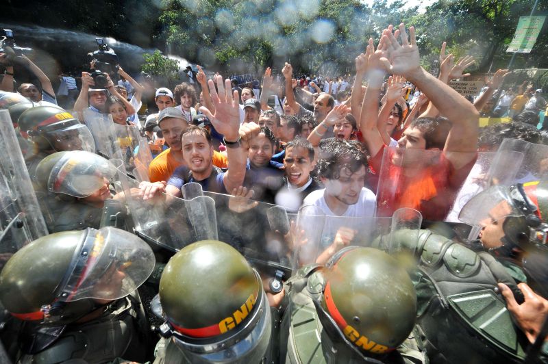 Revoltados, estudantes e professores se mobilizaram ontem para protestar contra a lei no campus da Universidade Central da Venezuela (UCV), a maior do país, foram reprimidos com jatos de água e gás lacrimogêneo por integrantes da Guarda Nacional.