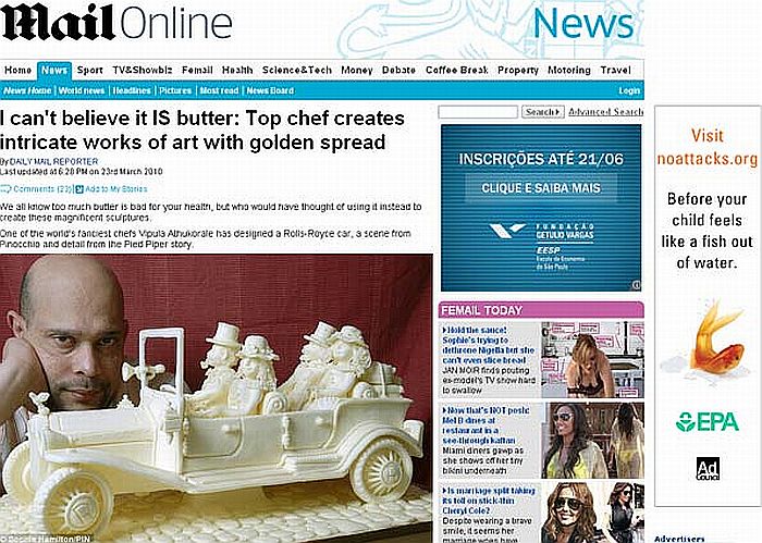 O chef Vipula Athukorale, de 46 anos, desenvolveu uma nova maneira de usar a manteiga. E não é na cozinha. Ele transforma a gordura em obras muito bem esculpidas.