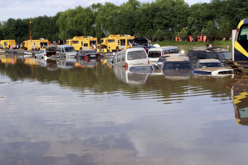 Segundo a Xinhua, a chuva derrubou árvores e a água, que em alguns locais chegou á altura da cintura, deixou dezenas de carros e ônibus ilhados. No bairro de Tongzhou, na zona leste de Pequim, duas pessoas morreram com a queda de um telhado, uma ao ser atingida por um raio, uma eletrocutada por um cabo de alta tensão quando tentava ajudar os vizinhos e um homem que ficou preso em seu carro no centro da cidade se afogou.