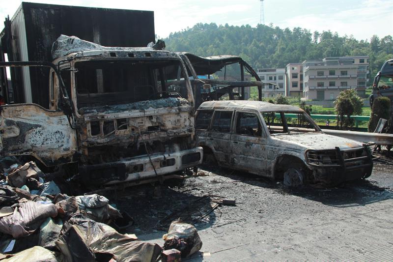 O acidente ocorreu na madrugada de sexta (18) para sábado na província de Hunan, no sudeste do país, em um trecho da rodovia que liga Xangai, no leste, à cidade de Kunming, no sul, quando um caminhão que transportava líquido inflamável - aparentemente álcool - se chocou com um ônibus de passageiros com capacidade para 53 pessoas, o que acabou provocando uma explosão.