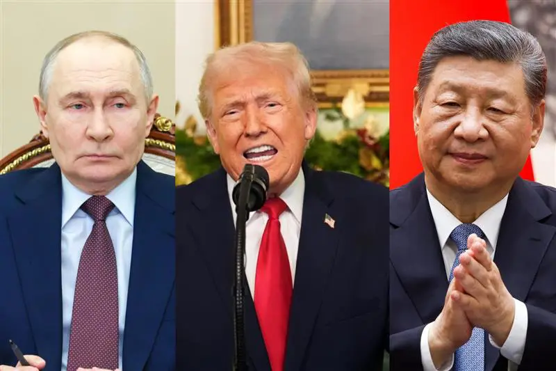 O ditador da Rússia, Vladimir Putin; o presidente dos EUA, Donald Trump; e o ditador da China, Xi Jinping: potências nucleares (Foto: EFE/EPA/VYACHESLAV PROKOFYEV/Doug Mills/Maxim Shemetov)