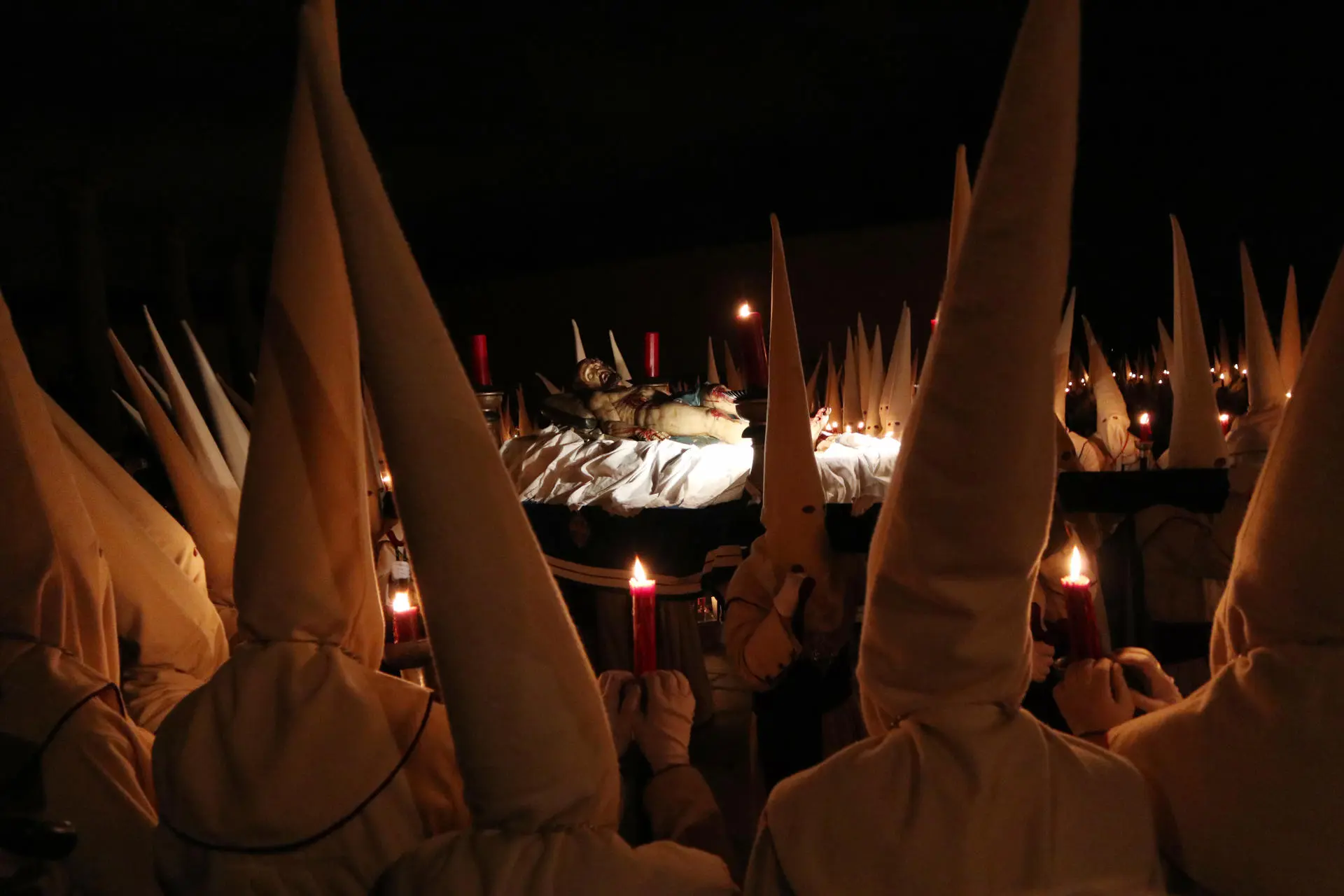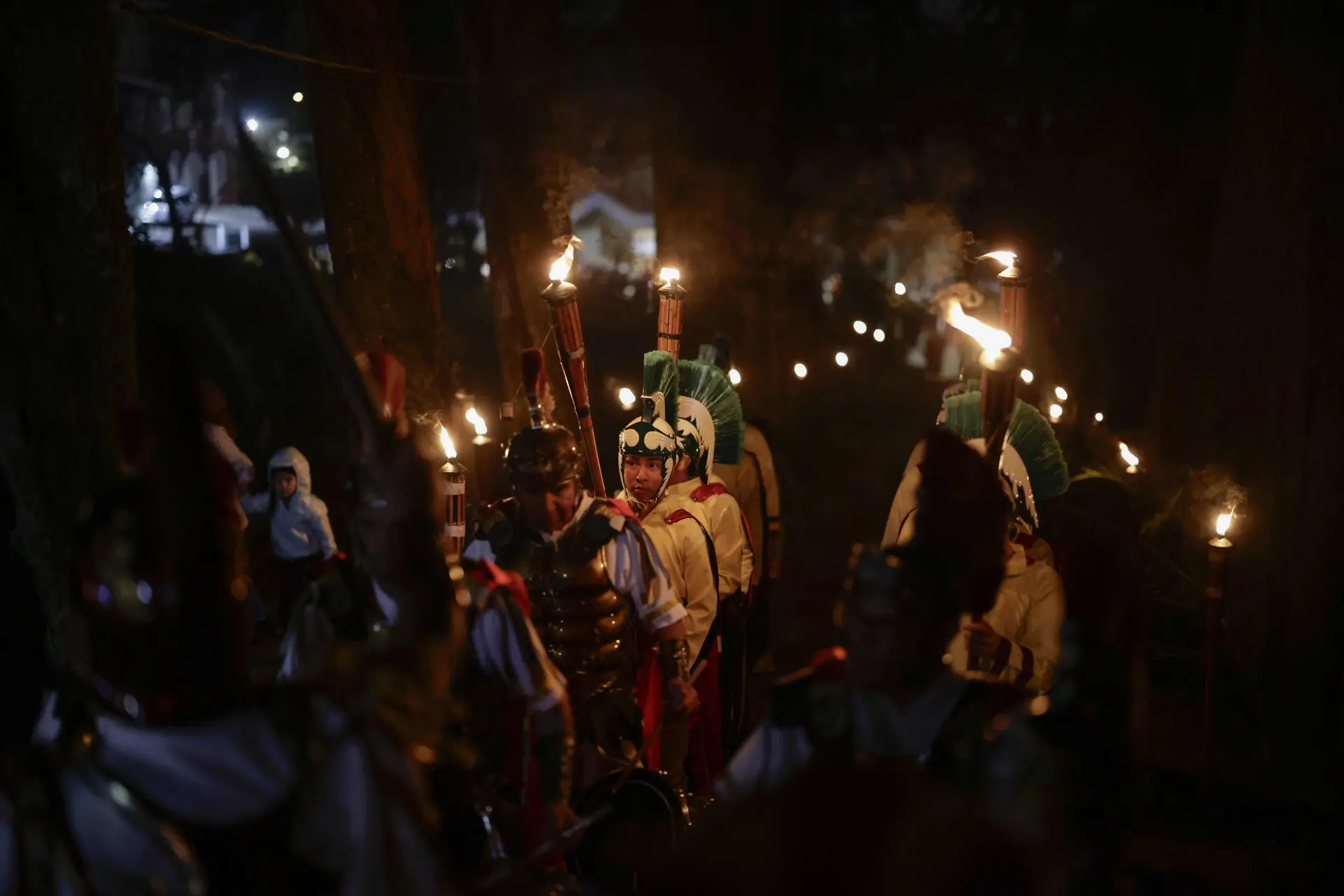 Procissão de 'Los Pasos', composta por uma dúzia de representações durante, durante a Quinta-feira Santa, na cidade de Ávila, Espanha (Foto: EFE/Raúl Sanchidrián.)