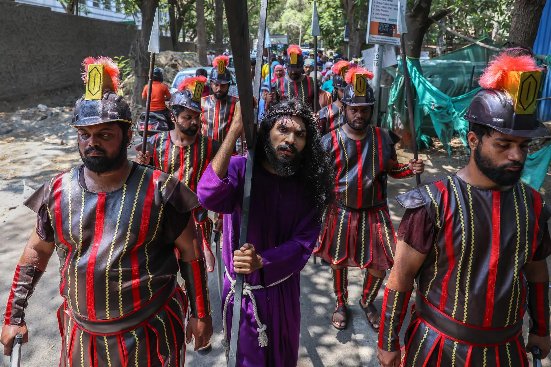 Encenação da Via Sacra na Sexta-Feira Santa em Mumbai, Índia (Foto: EFE/EPA/DIVYAKANT SOLANKI)