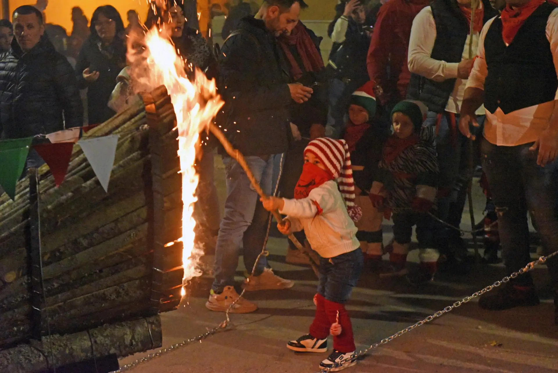 Em Foggia, na Itália, moradores constroem e queimam enormes tochas de madeira, chamadas fracchie, algumas com até 12 metros de comprimento, para iluminar simbolicamente o caminho da Virgem Maria em luto, na Sexta-feira Santa (Foto: EFE/EPA/FRANCO CAUTILLO)