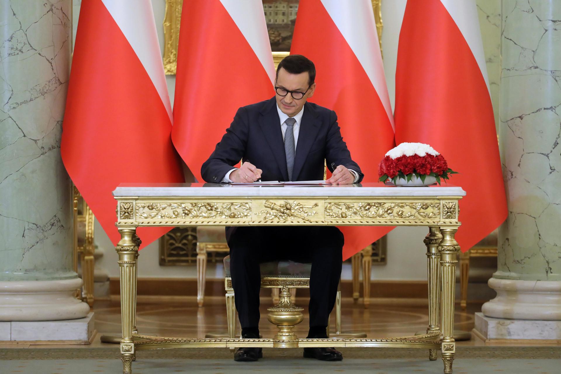 O conservador Mateusz Morawiecki assumiu nesta segunda-feira (27) o cargo de primeiro-ministro da Polônia, algo que a oposição criticou como uma “perda de tempo”, porque dificilmente seu governo obterá os votos de confiança necessários do Parlamento.