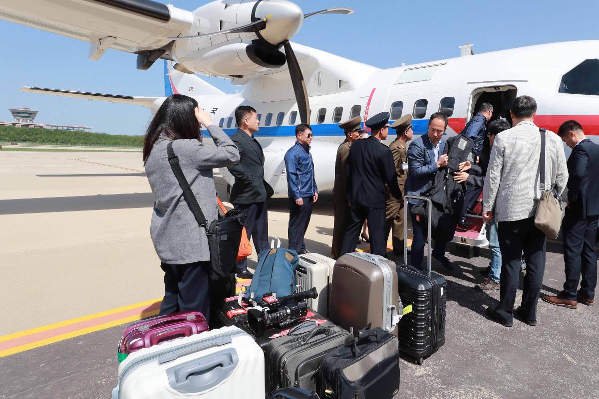 Depois disso, o grupo segue de ônibus e, em seguida, caminha até o local. O grupo foi convidado pelo governo do líder supremo do país, Kim Jong-un, e vai acompanhar a cerimônia formal, aguardada para os próximos dois dias.