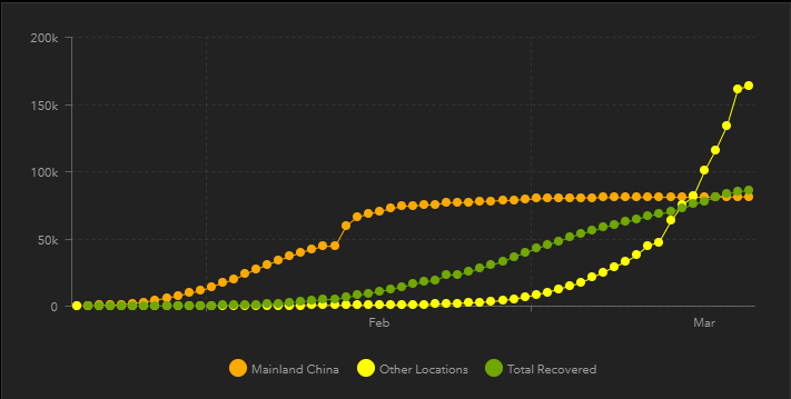 O número de mortos por coronavírus no mundo passou de 10 mil nesta sexta-feira (20), segundo levantamento da Universidade Johns Hopkins. O número de casos confirmados está perto de 250 mil e vem se acentuando rapidamente desde o início de março, como mostra o gráfico abaixo elaborado pela instituição.