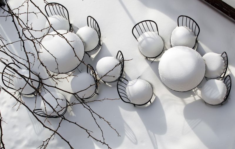A neve cobre mesas e cadeiras no pátio externo de um restaurante em Cambridge. Os norte-americanos do nordeste do país tiveram de desenterrar seus carros, limpar as calçadas e enfrentar uma confusa manhã para ir ao trabalho depois que uma tempestade despejou 48 centímetros de neve na região, após um Natal de aeroportos fechados pelo mau tempo.