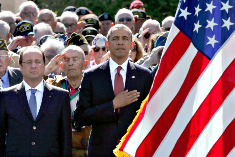 Obama disse que o 70.º aniversário do desembarque não serve apenas para comemorar uma vitória, da qual seus cidadãos são "orgulhosos", mas também para "contar a história desses homens e dessas mulheres" que morreram para libertar a Europa da Alemanha nazista. "Tudo podia sair mal. O vento, a maré, o imprevisto...", observou.
