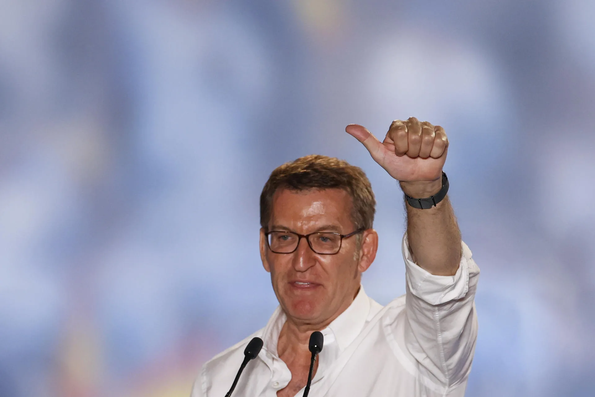 O conservador Partido Popular (PP), liderado por Alberto Núñez Feijóo, foi o mais votado no domingo, ao obter 136 cadeiras. Já tem praticamente garantido o apoio da legenda de direita Vox, que conquistou 33 assentos. A soma de cadeiras, 169, é insuficiente para garantir maioria absoluta (176 assentos) no Congresso dos Deputados.