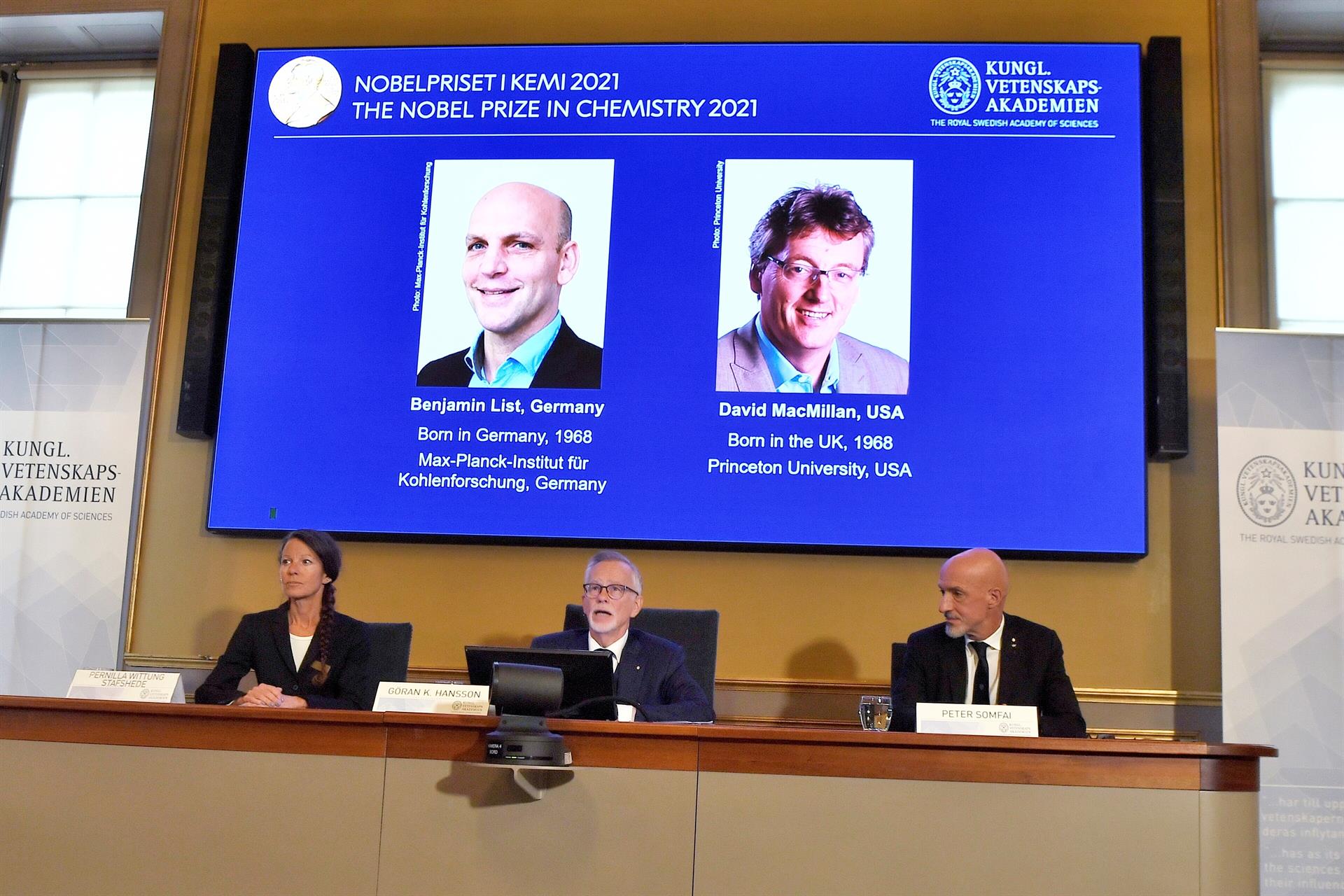 Benjamin List, pesquisador do Instituto Max Planck para Pesquisas com Carvão em Mülheim an der Ruhr, Alemanha, e David W. C. MacMillan, da Universidade de Princeton, Estados Unidos, dividirão o prêmio de 10 milhões de coroas suecas (cerca de R$ 6,1 milhões).