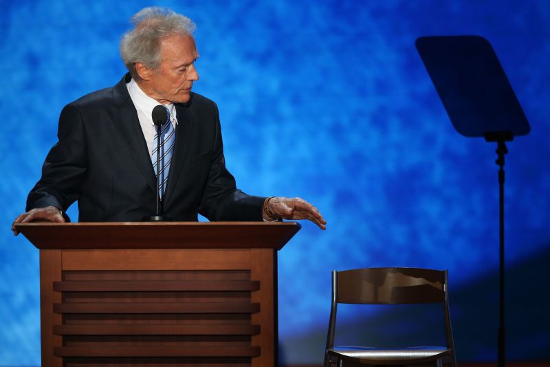 Eastwood falou após um vídeo comovente sobre Mitt Romney e sua família, mostrando um lado mais pessoal do candidato presidencial, em um esforço para torná-lo mais agradável aos eleitores. O diretor e ator vencedor do Oscar, de 82 anos e republicano de longa data, divagou através de vários temas, censurando a cadeira vazia.