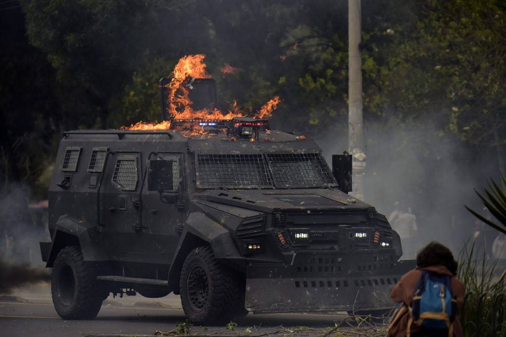 "Os participantes destas atividades violentas e de vandalismo queimaram uma Unidade de Polícia Comunitária (UPC), temos uma dezena de patrulheiros destruídos", disse sobre o incidente em Guayaquil. Houve ainda outras prisões em províncias no norte do país.
