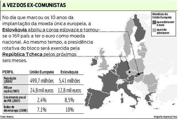 A decisão da pequena nação alpina, com 5,4 milhões de habitantes, de abandonar a coroa eslovaca e se juntar à Zona do Euro, parece ainda mais sábia em meio à crise financeira mundial, porque outros países europeus que não adotaram o euro viram suas moedas quase entrarem em colapso e tiveram que pedir socorro ao Fundo Monetário Internacional (FMI). Com a adesão da Eslováquia, o euro será usado agora por 330 milhões de pessoas e a Zona do Euro representa países que têm um Produto Interno Bruto (PIB) anual de mais de 4 trilhões de euros (US$ 5,6 trilhões).