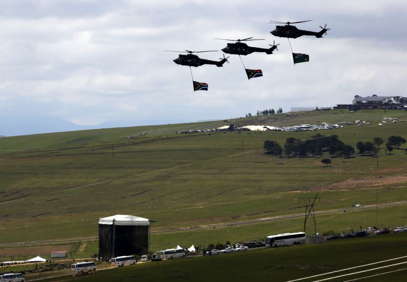 O som de uma banda e o canto espontâneo de convidados soprava sobre as colinas de Qunu. Enquanto isso, alguns membros da comunidade começavam a chegar para acompanhar a cerimônia em grandes telas montadas ao redor do vilarejo. "Quero apenas saudá-lo com uma despedida", disse Shirley Kobo de 32 anos. "Ele nos tirou da poeira".