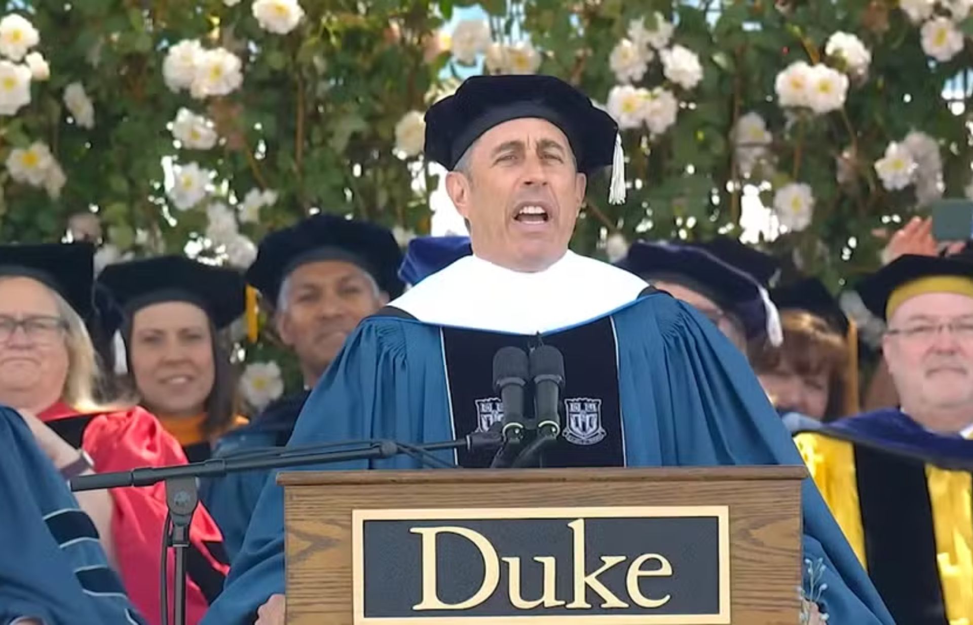 O comediante judeu Jerry Seinfeld foi alvo de protestos na renomada Universidade de Duke, na Carolina do Norte, neste domingo (12), após ser convidado para discursar em uma cerimônia para universitários que concluíam a graduação.