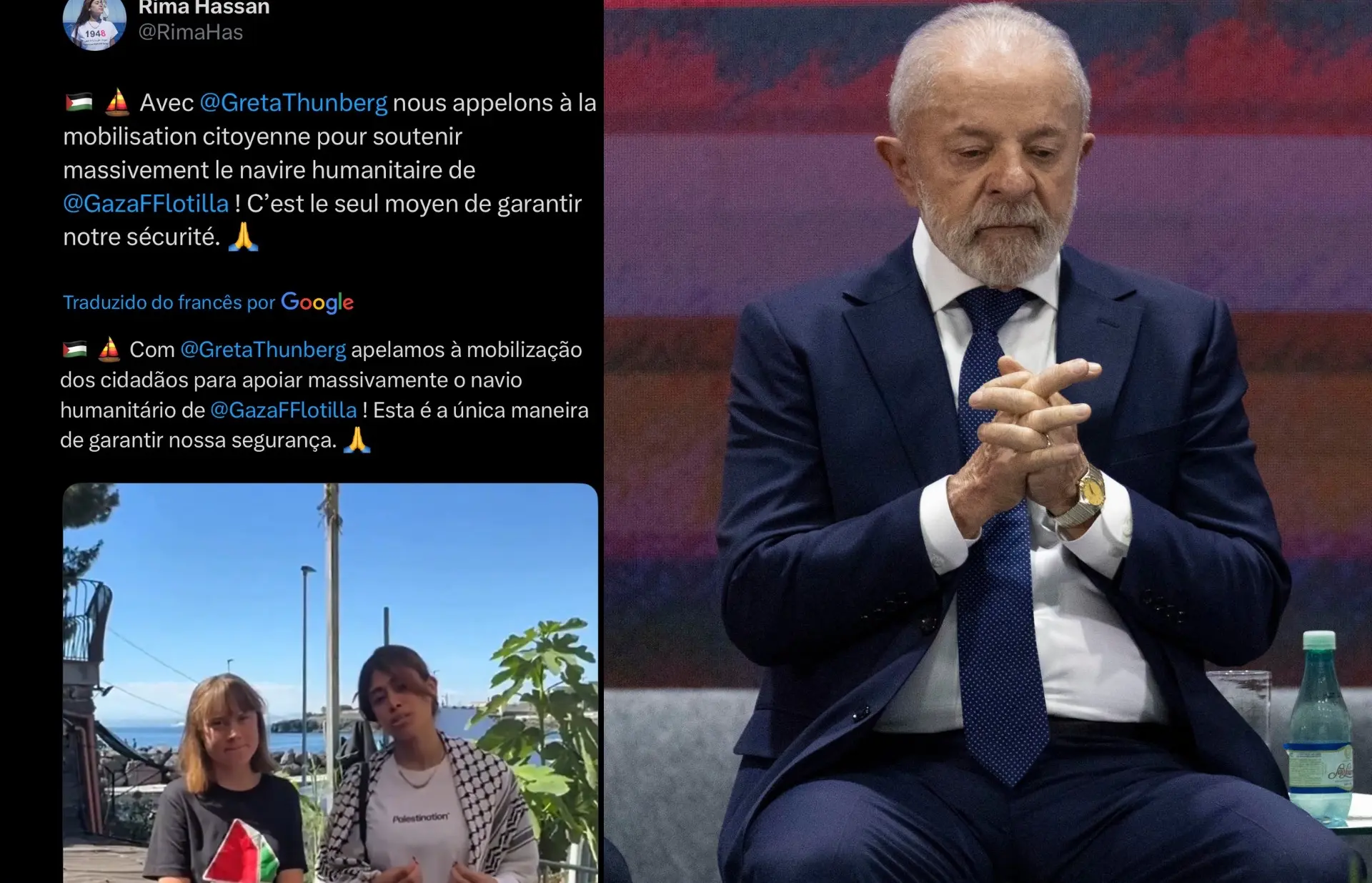 A eurodeputada francesa Rima Hassen, que participa de uma viagem para Gaza ao lado da sueca Greta Thunberg e outros ativistas, publicou nas redes sociais um pedido de "proteção" ao presidente do Brasil, Luiz Inácio Lula da Silva, e outros chefes de Estado devido à presença de drones perto do navio Freedom Flotilla, carregado com ajuda humanitária.