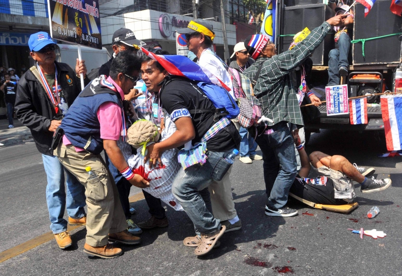 Os protestos, que também têm como objetivo impedir a realização das eleições em 2 de fevereiro, convocadas por Yingluck para conter a crise, têm sido pacíficas, embora tenham ocorrido ataques durante a noite. Dentre eles disparos contra locais de encontros de manifestantes e o lançamento de explosivos contra casas de oponentes do governo. A autoria dos ataques é desconhecida.