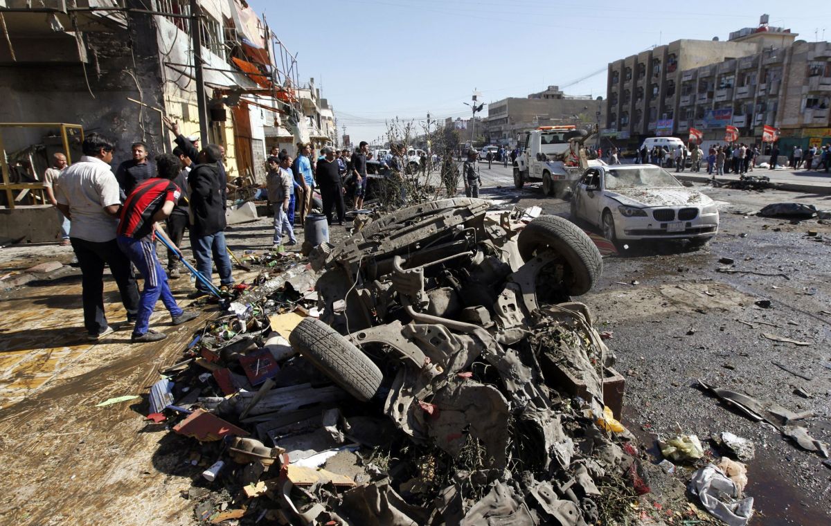 Carros-bomba explodiram na terça-feira perto de um movimentado mercado de Bagdá, próximo da altamente fortificada Zona Verde, e em outros bairros da capital. Um homem-bomba dirigindo um caminhão atacou uma base da polícia em uma cidade xiita ao sul da capital, informaram fontes policiais e em hospitais.