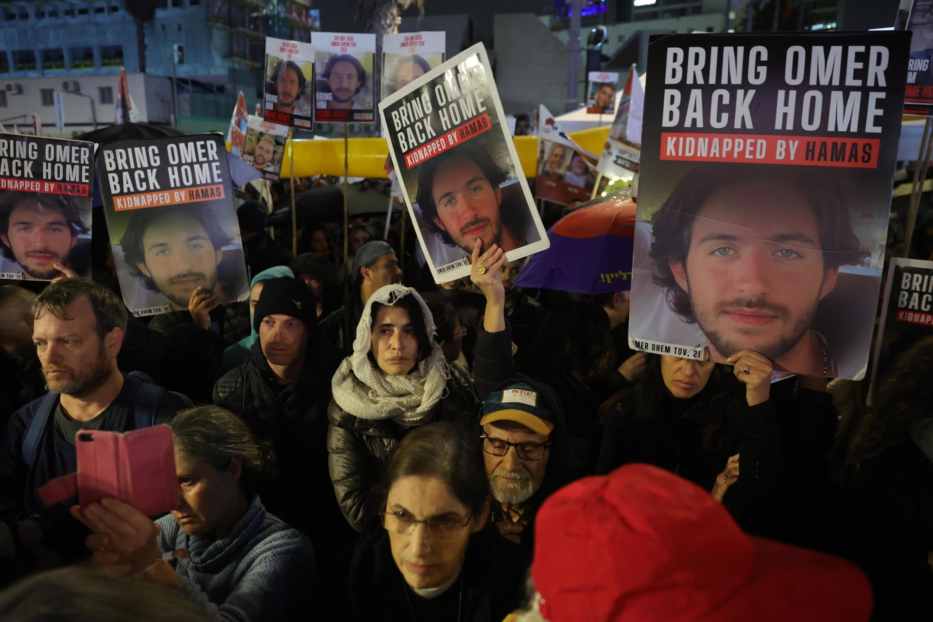 O ato das famílias dos reféns ocorreu separadamente de uma manifestação contra o primeiro-ministro de Israel, Benjamim Netanyahu, que está em curso em um outro ponto de Tel Aviv.
