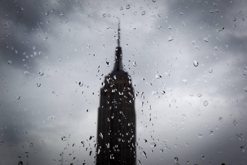 O Empire State Building fotografado através de uma janela molhada de chuva, em Manhattan, na cidade de Nova York. Mesmo em meio ao tempo ruim, muitos insistiram nas comemorações do feriado de 4 de Julho, o Dia da Independência dos Estados Unidos. A agência Reuters destacou ontem a determinação de "campeões comedores de cachorros-quentes, adeptos de piqueniques de fundo de quintal e amantes de desfiles de cidades pequenas".
