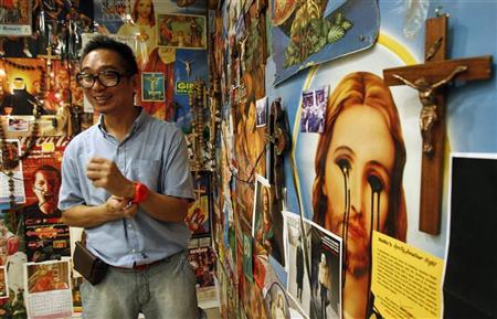 Uma instalação de arte que mistura uma imagem de Cristo com símbolos kitsch da cultura pop, e inclui um crucifixo com um pênis móvel, causou alvoroço entre os católicos conservadores nas Filipinas, que consideram a obra um sacrilégio.