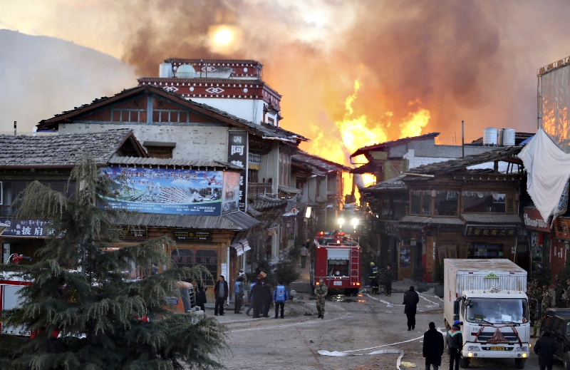 Um incêndio de grandes proporções se alastrou por dez horas durante a madrugada de ontem e devastou uma antiga cidade tibetana, no sudoeste da China. A cidade, Dukezong, em Shangri-la, é um ponto turístico do país. Com mais de mil anos, é conhecida por suas preservadas ruas antigas, estruturas e cultura tibetana. Não há informação sobre possíveis vítimas, tampouco sobre as causas do incêndio. Mais de dois mil bombeiros, soldados, policiais, funcionários e voluntários locais combateram as chamas, que só foram controladas quase onze horas depois, informou o governo local.