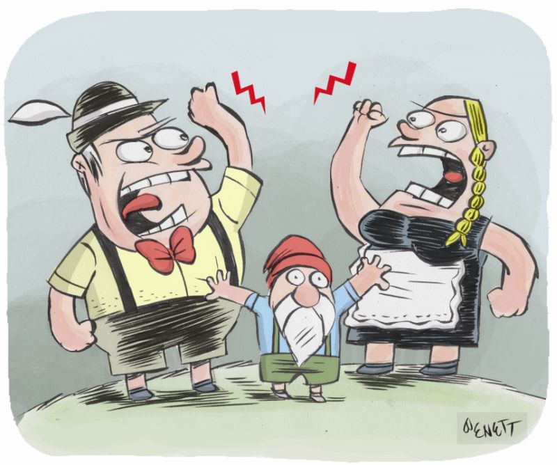 Com o início do outono no Hemisfério Norte, aumenta o clima de guerra entre vizinhos na Alemanha. Não importa a cidade em que vivem, os moradores brigam entre si por motivos inimagináveis para um brasileiro: de qual casa vem as centenas de folhas caídas na rua? E quem vai limpar? Com o fim do verão europeu, quando todos retornam depois das férias, os tribunais alemães ainda estão sobrecarregados com disputas que incluem se o vizinho pode ou não lotar seu quintal com anões de jardim. Mania alemã, os seres feitos de terracota são polêmicos para quem gosta, tradicionais objetos de decoração; para quem detesta, símbolo de mau gosto. Casas cheias de anões são motivo de briga por enfear a vizinhança.