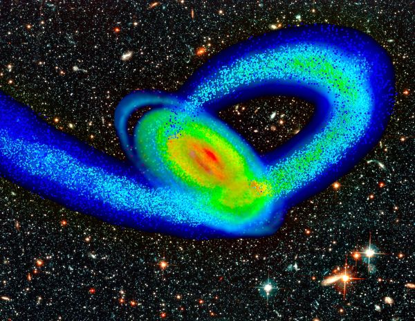 A revista Nature divulgou imagens de computador que são resultado de um estudo que demonstra que o formato da Via Láctea é consequência de colisões com a galáxia anã Sagitário Dwarf. A tese contradiz a teoria tradicional de que a forma de disco espiralado da galáxia não teria influência externa. A Via Láctea tem cerca de 200 bilhões de estrelas.