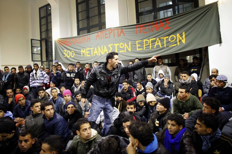 Dezenas de policiais usando roupas especiais isolaram hoje as ruas ao redor da Escola de Direito da Universidade de Atenas, que foi tomada por cerca de 200 imigrantes ilegais que fazem greve de fome para exigir sua legalização no país. Pela lei grega sobre asilo universitário, a polícia não pode entrar em universidades e escolas exceto em circunstâncias excepcionais.