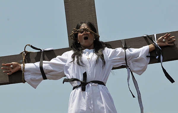 Cerca de 25 filipinos, entre eles, Mary-Jane Mamangun (foto), foram pregados em cruzes durante encenações reais da Crucificação de Cristo em aldeias do país durante as celebrações da Sexta-Feira da Paixão. A mulher, convencida que o sacrifício ajudou sua irmã a se recuperar de um câncer, passa há 14 anos pelo ritual, desaprovado pela Igreja Católica.